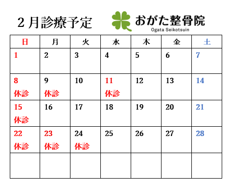 | 【受付時間】 午前9:00~12:30 午後15:00~19:30 【休診日】 祝日・日曜日/上記以外、研修の為休診有 各種保険取り扱い・交通事故・労災 最終受付は受付時間30分前まで |
