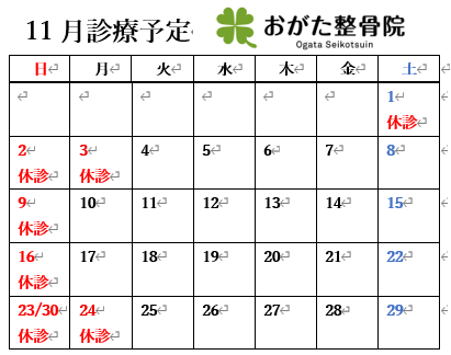 | 【受付時間】 午前9:00~12:30 午後15:00~19:30 【休診日】 祝日・日曜日/上記以外、研修の為休診有 各種保険取り扱い・交通事故・労災 最終受付は受付時間30分前まで |